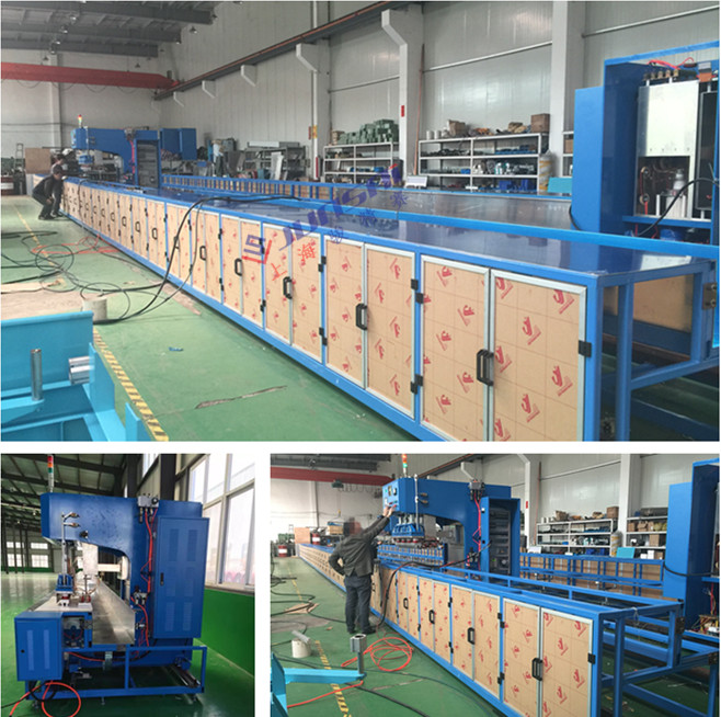 軌道式全自動高周波焊接機(jī)每次熔接牢固穩(wěn)定,材料厚薄均可滿足。機(jī)器料糟深寬,方便大面積連續(xù)接駁。機(jī)器可連續(xù)壓線接熔,接熔長度可以自由定制。 歐洲制式方形高頻震蕩箱,出力更大,更加穩(wěn)定。機(jī)器為C型結(jié)構(gòu),機(jī)身至焊頭跨度長達(dá)750mm??蛇B續(xù)壓線接熔,也可以選擇同 時雙線熔接。