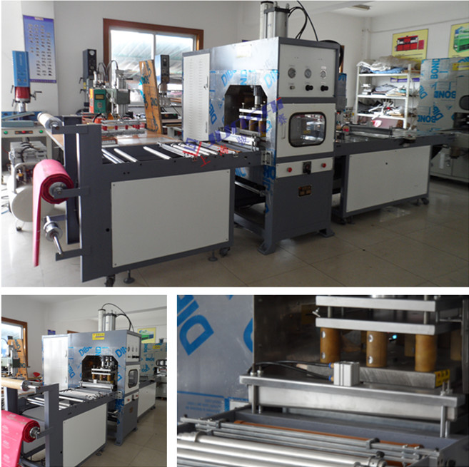 4. 配合高周波熔接同步送料/拉料,控制準(zhǔn)確,速度可調(diào),大工作壓力35T。
