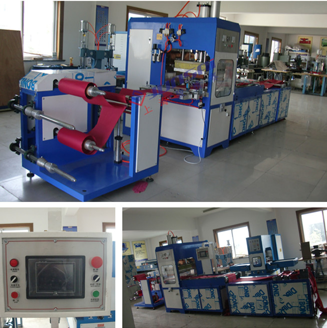 全自動高頻機是塑料熱合設備,它是利用高頻電場使塑料內(nèi)部份子振蕩產(chǎn)生熱能而進行各類制品熔合。主要用于:吸塑包裝,包括上下雙泡罩熱合切邊,泡罩與紙板熱合切邊等。