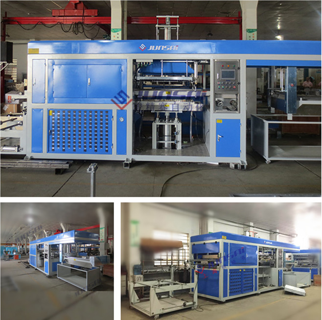 汽車防水膜吸塑機(jī)成型過程為:卷料上機(jī)——高溫加熱——真空吸塑成型——噴槍冷卻——整版切邊,然后送往沖床精密裁切。